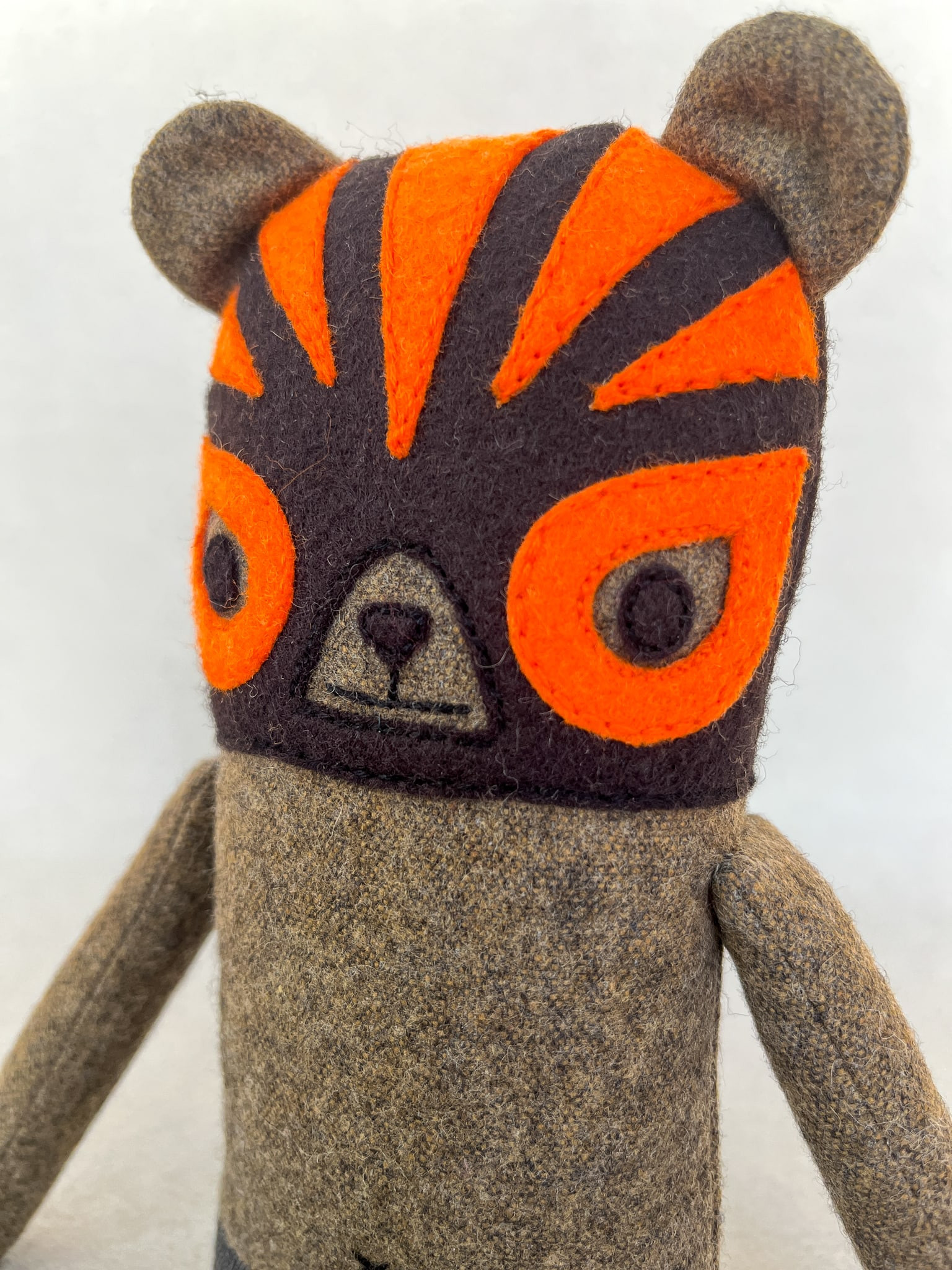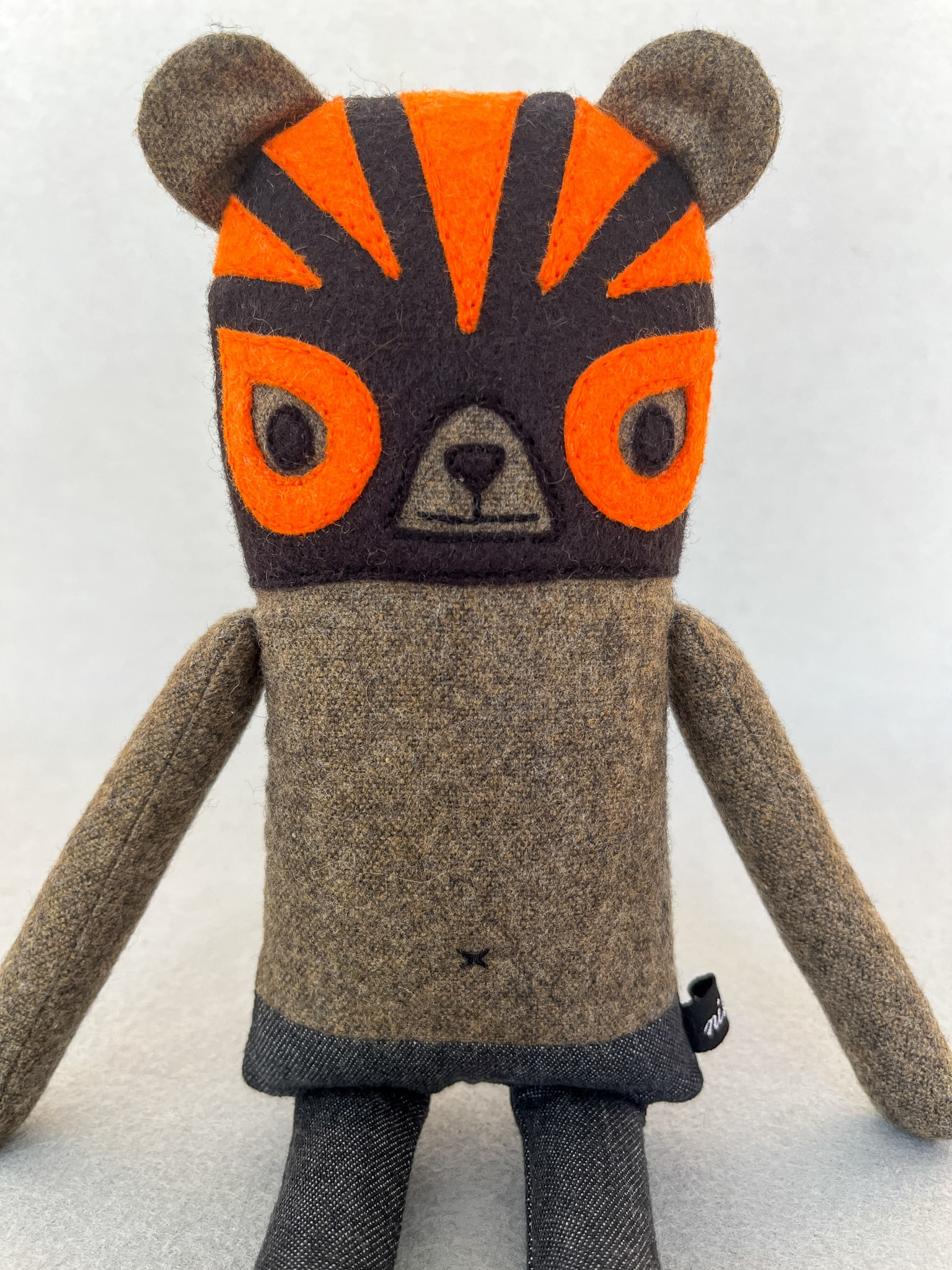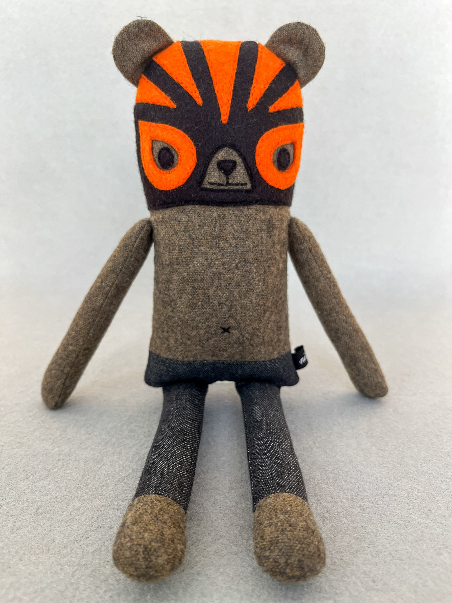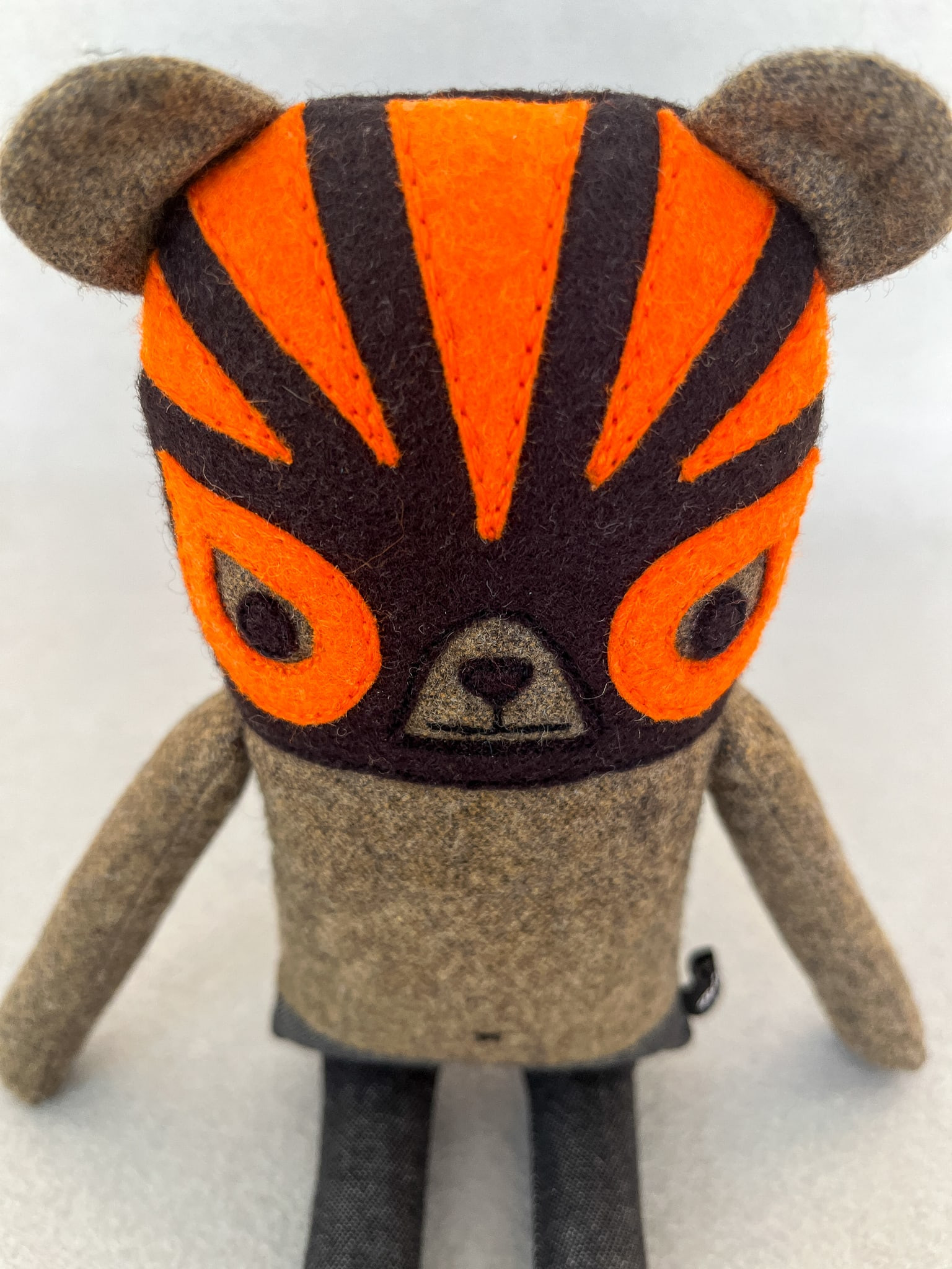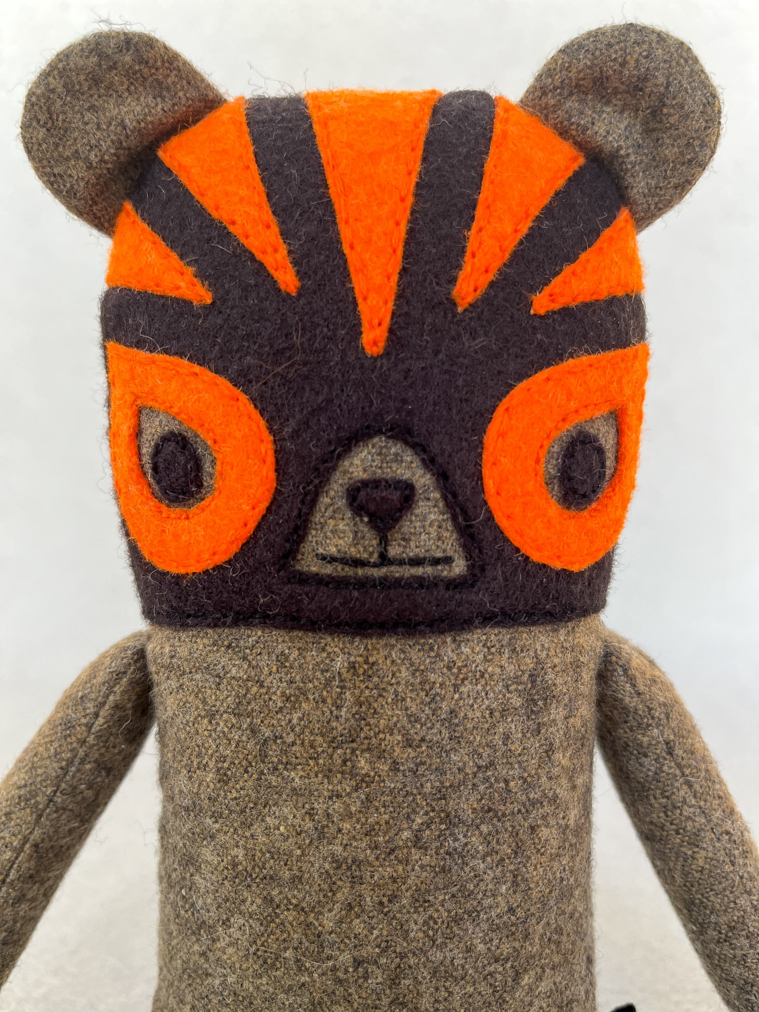 El Demonio besteht aus Wollmischfilz, Schurwolle und Baumwolle. In Form gebracht, mit Füllwatte, die mit dem Öko-Tex Standard 100 zertifiziert ist. Der Luchador ist 32 cm groß. Seine Maske und sein Gesicht sind handgestickt.